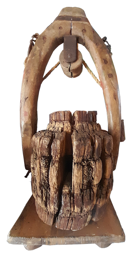 El Pozo de los Deseos. Año 2025: Escultura de reciclaje compuesta por un buje de carro antiguo y un horcate, arreo en este caso de madera, colocado en el cuello de las caballerías y usado para sujetar las cuerdas o correas de tiro, permitiendo al animal arrastrar carros, carruajes u otros aperos de labranza.