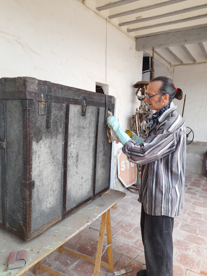 Colosal trabajo de restauración y decoración llevado a cabo por Carmona en esta cama del siglo XIX, combinando magníficos elementos pictóricos con tallas y piezas artesanas, y realzando cada uno de ellos haciendo uso de una viva policromía armónicamente conjugada con tonos dorados que la convierten en una joya digna de emperadores y reyes.