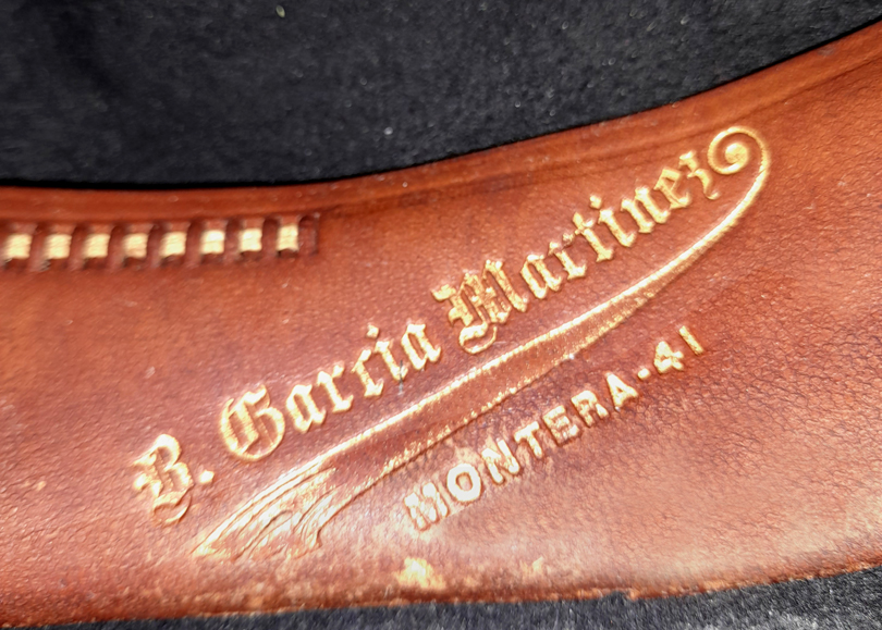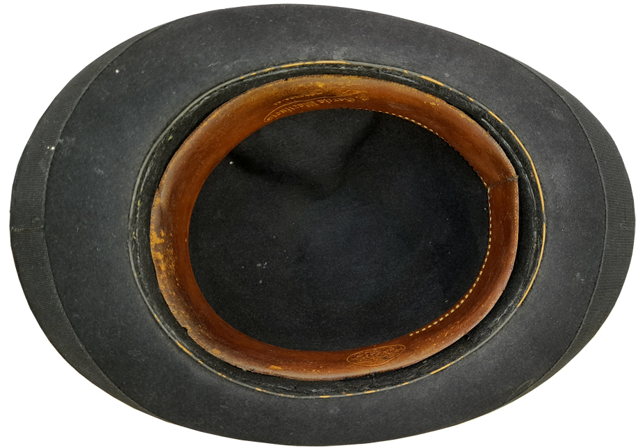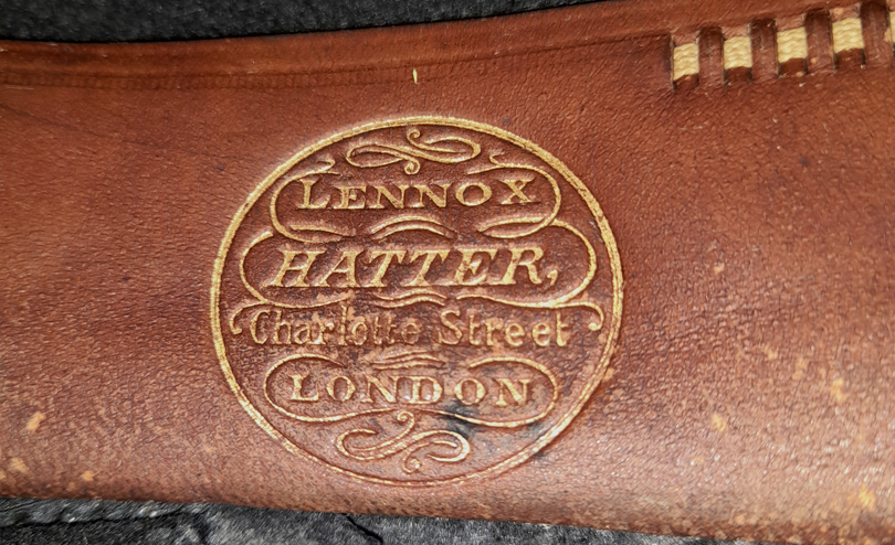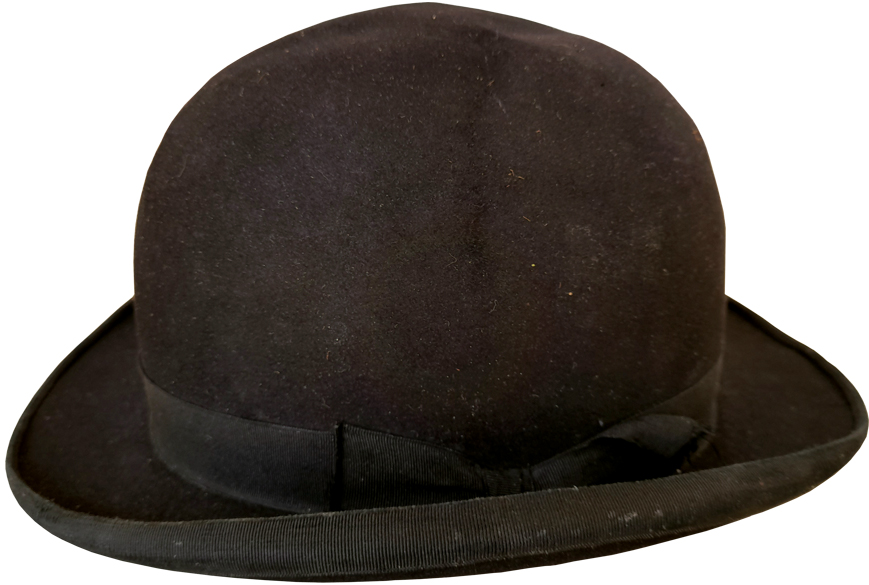 Bombín inglés. Siglo XIX: Realizado en fieltro negro adorando con un lazo lateral. Manufactura: B. García Martínez. Montera 41 (Madrid).