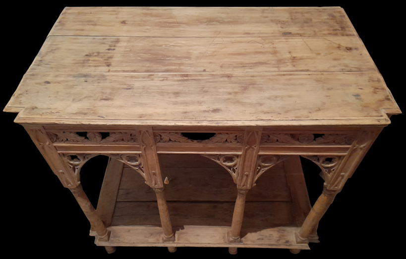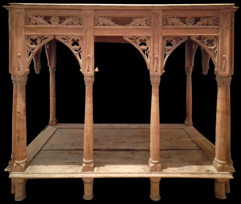 Estos dos sillones, de hermosa talla, que formaron parte del mobiliario de la Sacristía de la iglesia de San Agustín de Almagro (C/Real), mantienen intacta su pátina del tiempo con su tapizado y cojines originales de tiempos pretéritos, sometidos tan sólo a una exhaustiva limpieza y con algún pequeño remiendo, más la restauración de los bajos entelados que recubren sus muelles primigénios.