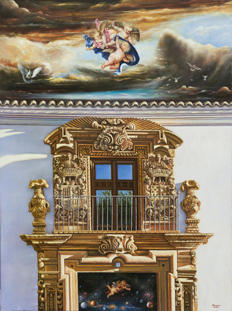 Los efectos de la luz al atardecer están captados magistralmente por Carmona, incidiendo directamente sobre la exquisita ornamentación pétrea de esta magnífica fachada, devolviendo a la piedra su primigenia fisonomía, oculta bajo capas opacas de sucesivas y poco afortunadas restauraciones. Mientras que sus motivos oníricos, de connotaciones murillescas, son rendidos homenajes a los antiguos y grandes pintores del Museo del Prado: "¡Mi únicos y apreciados maestros!"-añade el pintor.